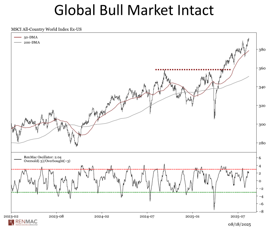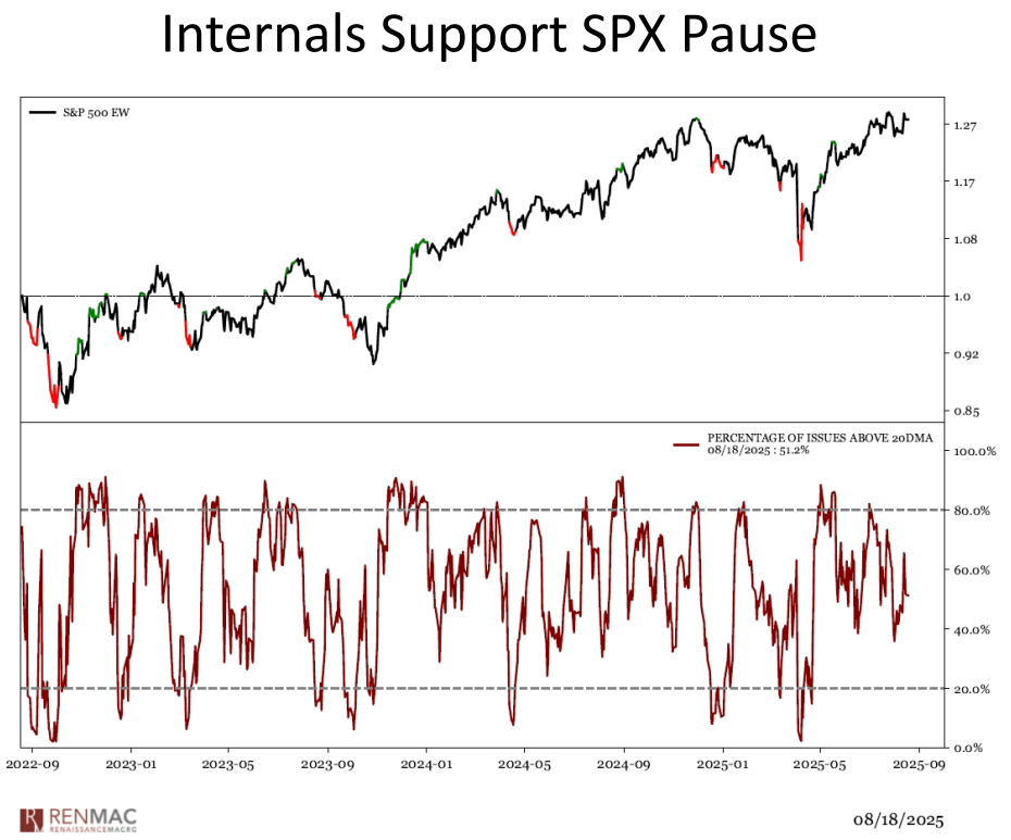This information does not constitute an offer to buy or solicitation for the sale or purchase of any service, security or any other financial instrument in any jurisdiction. It is not the endorsement of any particular investment, or an official confirmation of any transaction. Renaissance Macro Securities, LLC (“RenMac”) does not represent this information to be complete or accurate and it should not be relied upon as such. All information is subject to change without notice. RenMac and/or its officers, employees and affiliates may from time to time acquire, hold or sell a position in the securities mentioned herein. Any comments or statements contained herein do not necessarily reflect those of RenMac, its employees and its affiliates. Buy or sell orders or any other instructions cannot be accepted by email and will not be acted upon. The confidentiality of internet email cannot be guaranteed. Your message may be read by persons other than the intended recipient. This communication may contain information that is confidential and may also be privileged. It is for the exclusive use of the intended recipient(s) only. If you are not the intended recipient(s), please note that any copying, distribution or use of this communication or information is prohibited. If you have received this communication in error, please notify the sender immediately and then delete the message from your computer. This email is the property of RenMac and RenMac does not accept liability for any errors or omissions in the content of this message which may arise as a result of transmission. RenMac archives and reviews incoming and outgoing email. Emails and attachments may be produced at the request of any regulator. Renaissance Macro Securities, LLC, Member FINRA & SIPC.