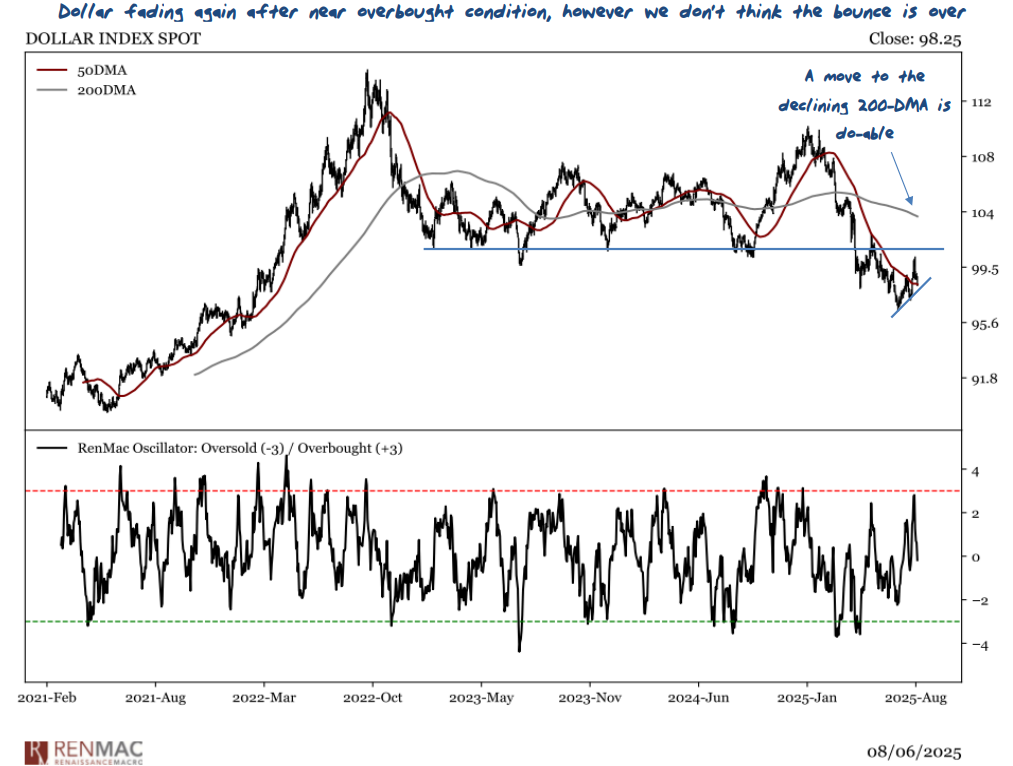This information does not constitute an offer to buy or solicitation for the sale or purchase of any service, security or any other financial instrument in any jurisdiction. It is not the endorsement of any particular investment, or an official confirmation of any transaction. Renaissance Macro Securities, LLC (“RenMac”) does not represent this information to be complete or accurate and it should not be relied upon as such. All information is subject to change without notice. RenMac and/or its officers, employees and affiliates may from time to time acquire, hold or sell a position in the securities mentioned herein. Any comments or statements contained herein do not necessarily reflect those of RenMac, its employees and its affiliates. Buy or sell orders or any other instructions cannot be accepted by email and will not be acted upon. The confidentiality of internet email cannot be guaranteed. Your message may be read by persons other than the intended recipient. This communication may contain information that is confidential and may also be privileged. It is for the exclusive use of the intended recipient(s) only. If you are not the intended recipient(s), please note that any copying, distribution or use of this communication or information is prohibited. If you have received this communication in error, please notify the sender immediately and then delete the message from your computer. This email is the property of RenMac and RenMac does not accept liability for any errors or omissions in the content of this message which may arise as a result of transmission. RenMac archives and reviews incoming and outgoing email. Emails and attachments may be produced at the request of any regulator. Renaissance Macro Securities, LLC, Member FINRA & SIPC.