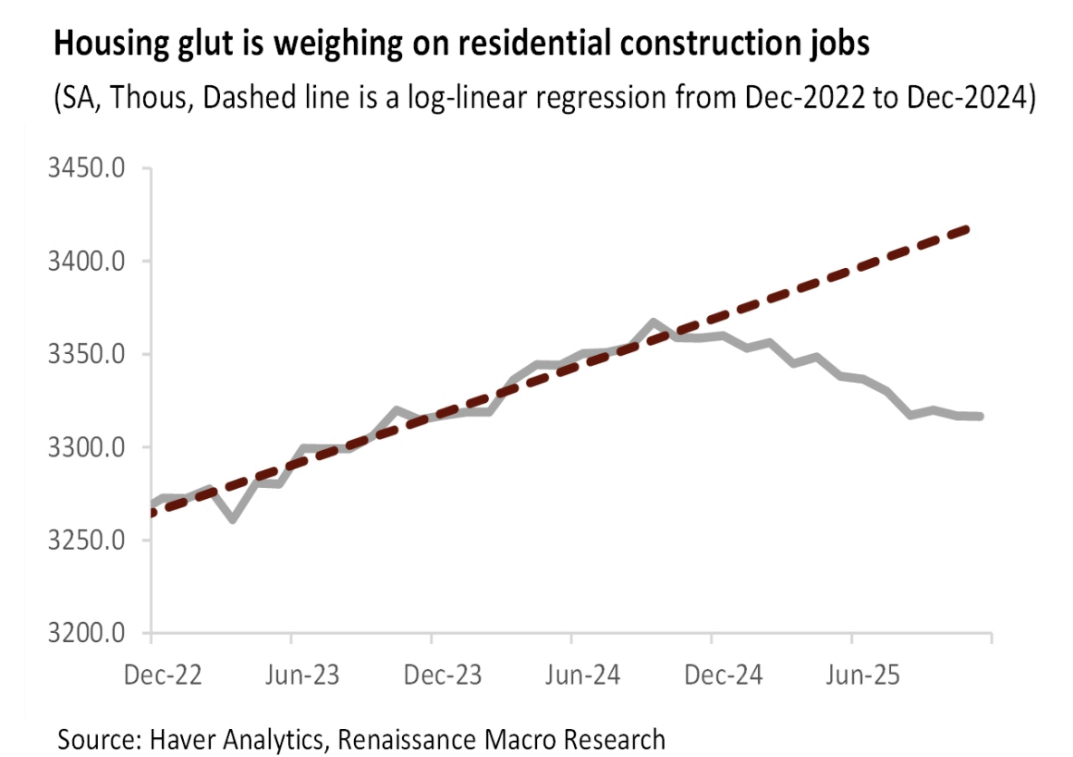 Sector Ranks Screenshot 2025-03-27 095259 Screenshot 2025-12-19 104607 Screenshot 2025-03-27 095259 Chart of the weekScreenshot 2025-03-27 095259Tariffs are unlikely to be the main driver behind slower job growth this year. A closer look at goods-producing employment shows declines largely tracking existing trends, with mining hit by falling oil prices and manufacturing weakening at a similar pace as the past two years. The bigger drag appears to be tight Fed policy and a slowdown in residential construction, where excess unsold inventory—not tariffs—is weighing most heavily on employment.