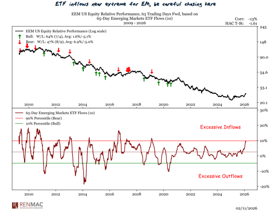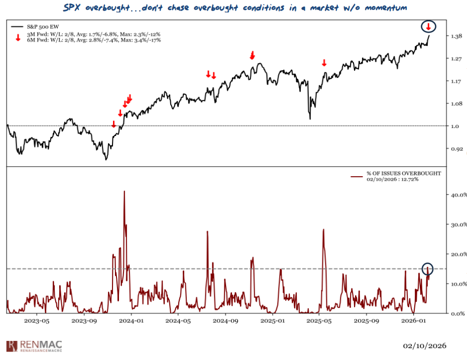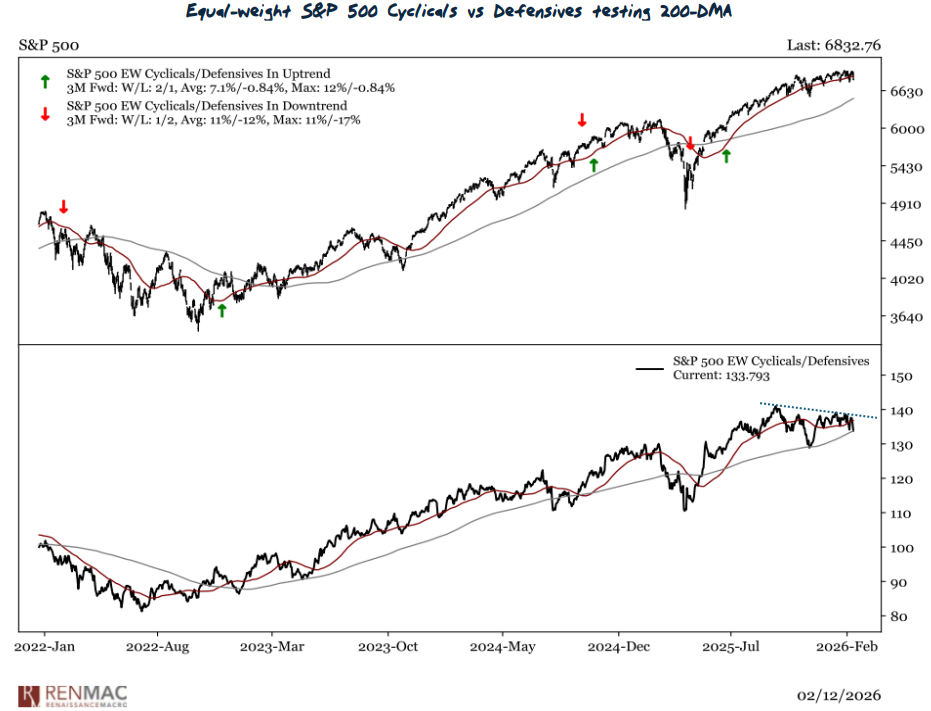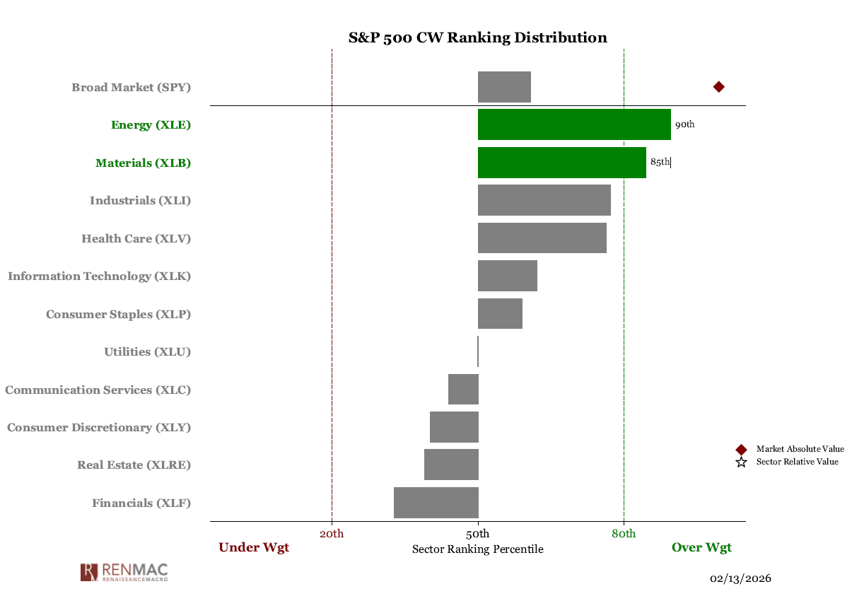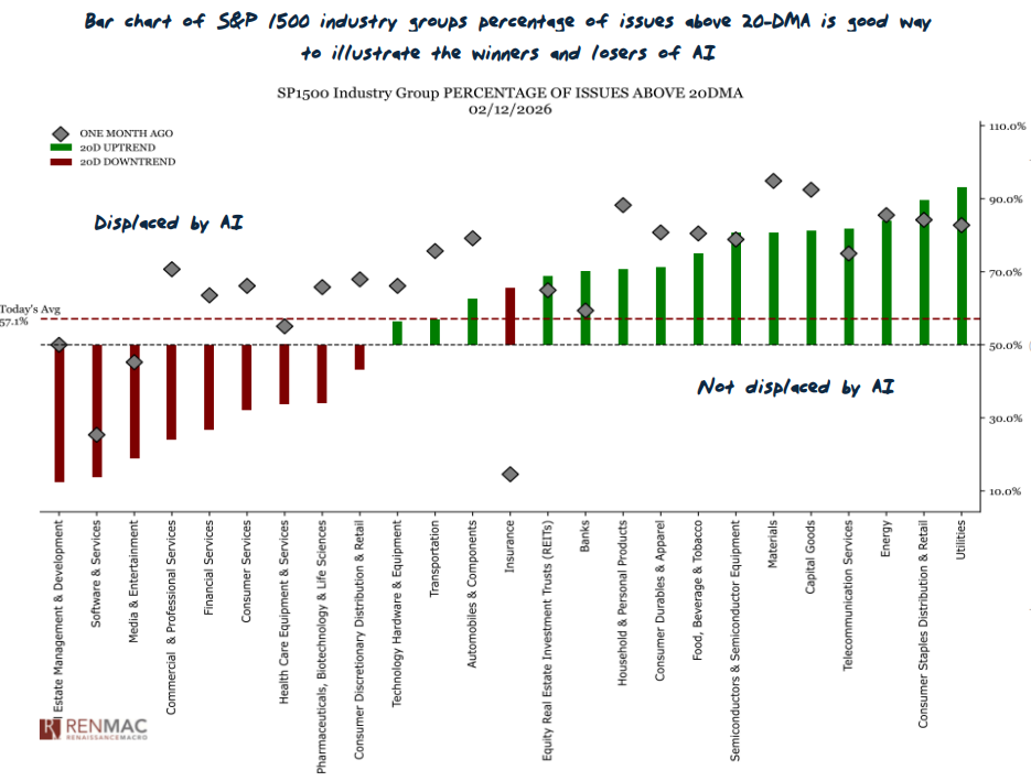 Sector Ranks Screenshot 2025-03-27 095259 Screenshot 2026-02-13 103116 Screenshot 2025-03-27 095259 Chart of the weekScreenshot 2025-03-27 095259The market is sharply selling tech stocks as it reassesses AI winners and losers amid growing uncertainty about AI's economic impact. Tech breadth is weakening, and the sector is not yet oversold. Given the unclear outlook, maintain tight risk controls and cut positions that break prior lows following oversold conditions.