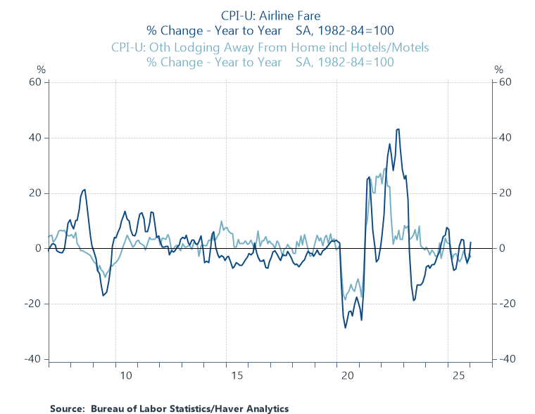 • Interestingly, there was a sharp increase in airfares despite the slowing in lodging away from home.