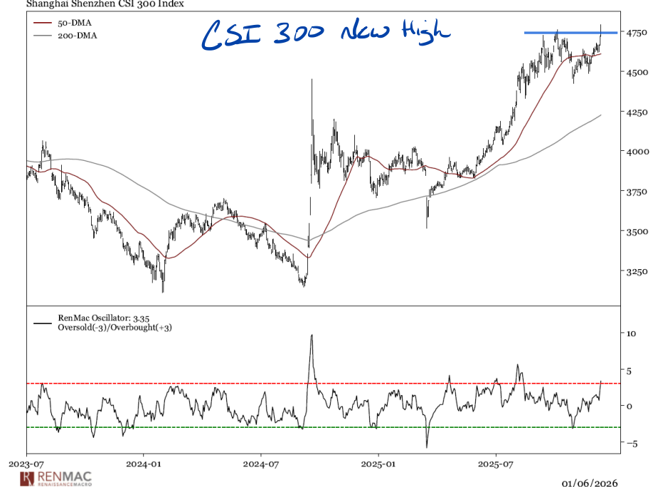 • New equal weight highs in SPX underscore the breadth improvement in equities, but momentum has presented itself in Europe and Asia with CSI 300 making a new high and the Stoxx 600 starting to show parabolic signs.