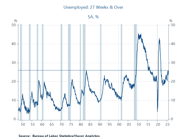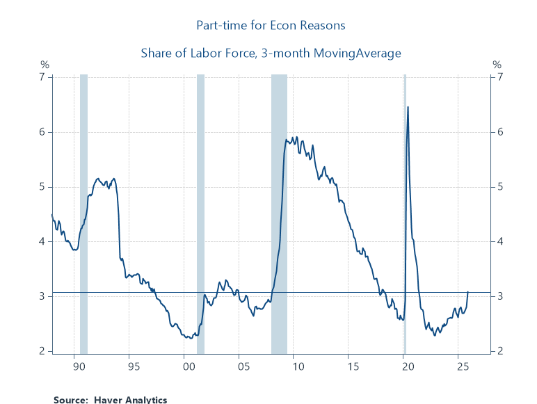 • Prime-age employment rose to 80.7%, the top-end of its range this year. So, to the extent the jobs market has cooled off this year, prime-age workers have been spared.