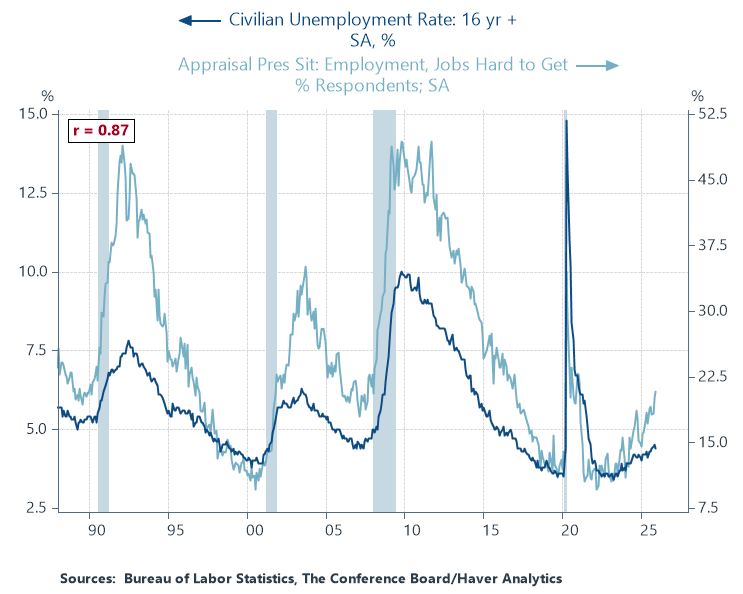 • The main risk moving forward is rising unemployment. Consumers continue to report difficulties with job finding. This tends to lead what happens with unemployment.