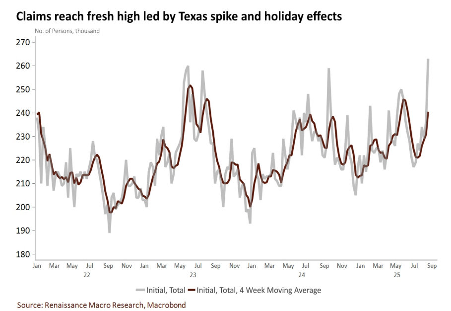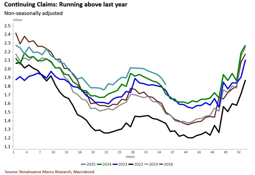 Screenshot 2025-03-27 095259 Sector Ranks Screenshot 2025-03-27 095259 Screenshot 2025-09-12 102313 Screenshot 2025-03-27 095259 Chart of the weekScreenshot 2025-03-27 095259Despite the rise in jobless claims, Neil would not read too much into this as we often get weird claims data around Labor Day, but more importantly, the increase was largely centered in one state, Texas (who saw recent flooding). The more important story is the rise in continuing claims against last year. While flat for the week, they were up 6.4% against the same time last year.