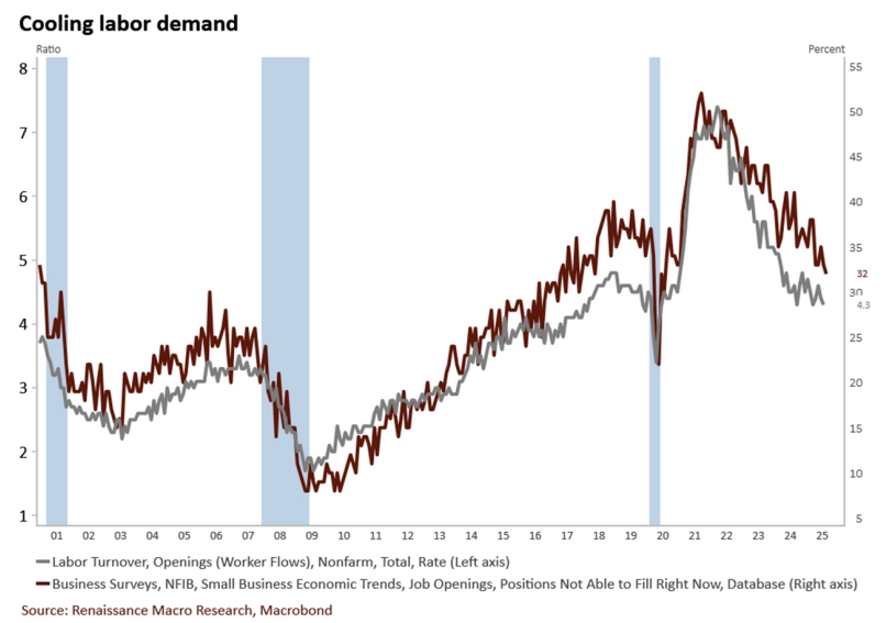 • US labor market continues its downtrend. Weekly job postings continue to trend down, layoffs picking up, quits are cooling.